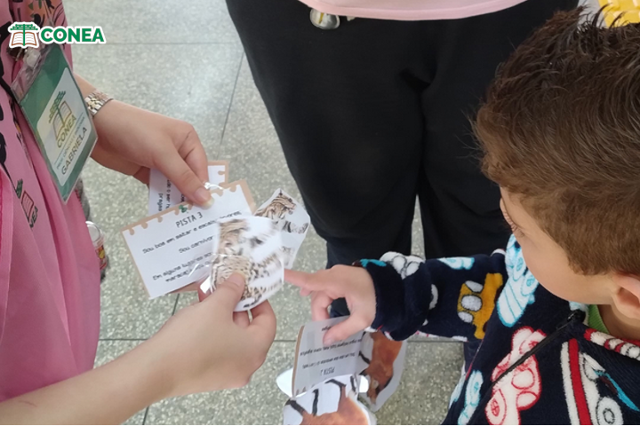Enquanto a doutoranda pesquisadora Natalie Pedroso realizava uma oficina sobre alimentação saudável com os adultos, o grupo de extensionistas realizaram um "Caça ao Tesouro" com as crianças presentes, em que os mesmos deveriam seguir pistas e encontrar as imagens dos animais, que estavam espalhados pelo Bloco L da UTFPR.